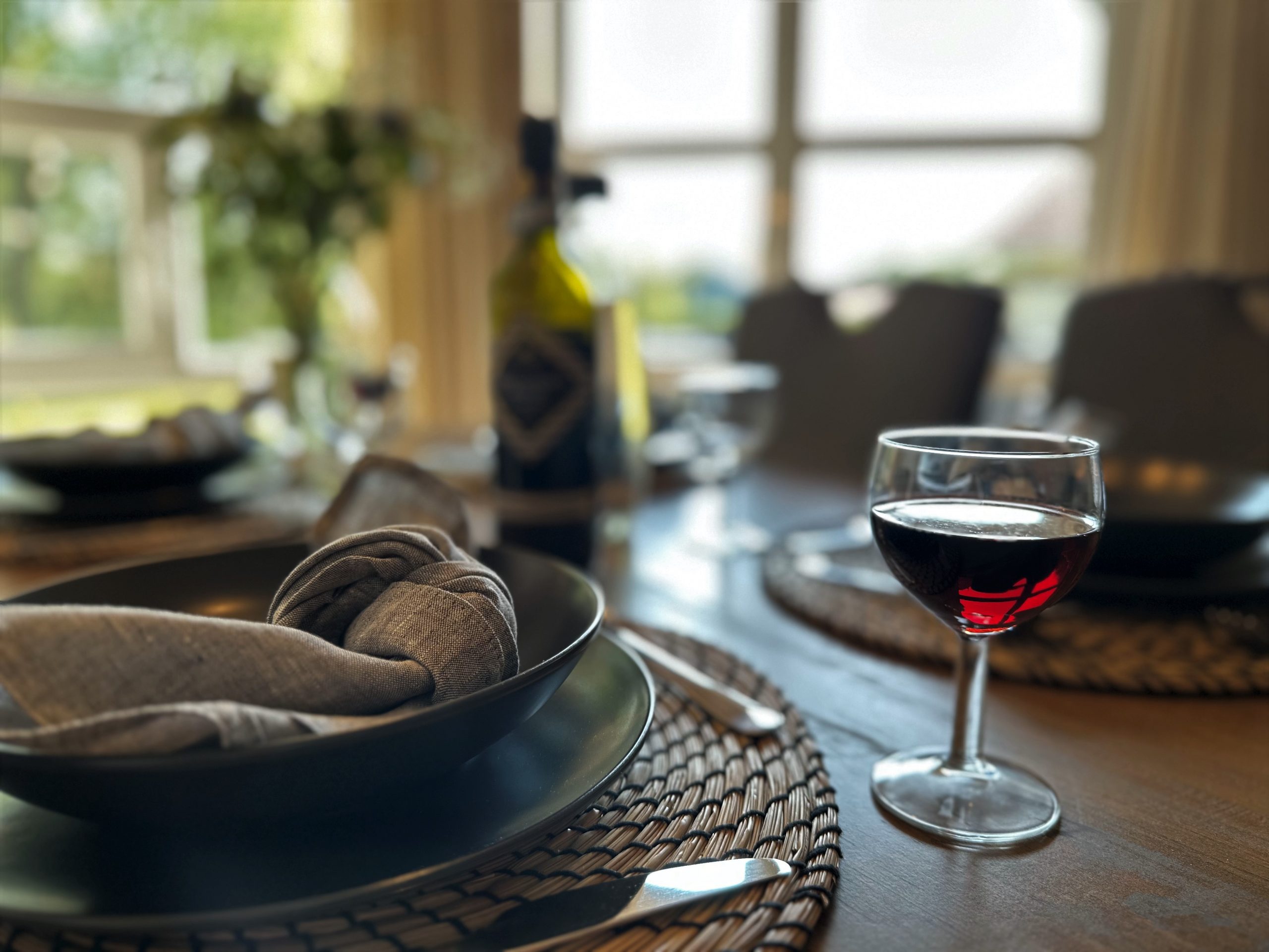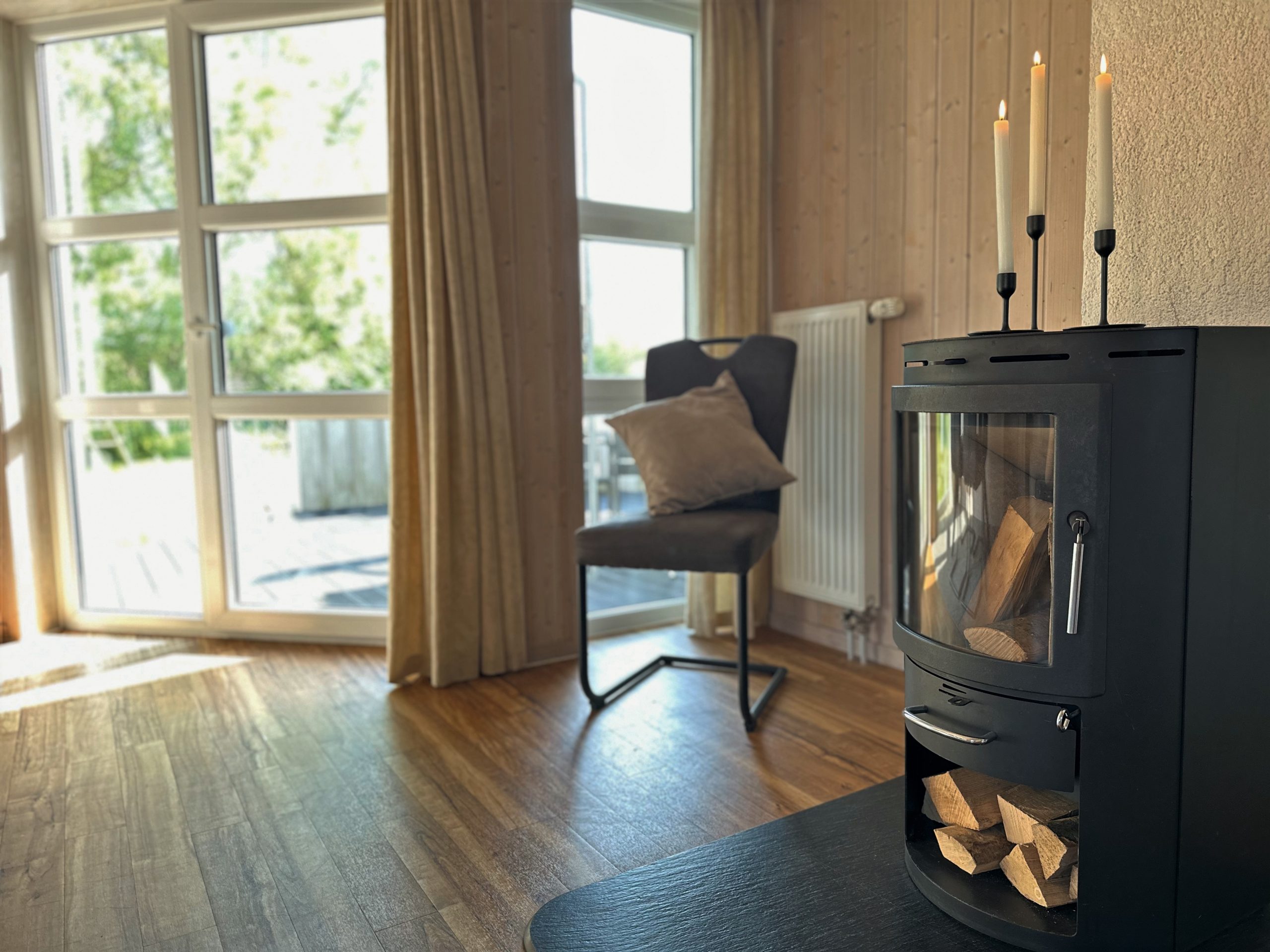 Gesellig wird es im modern eingerichteten Wohnzimmer mit großer Fensterfront, welches Dank der Dachschrägen und des romantisch knisternden Kaminofens eine ganz besondere Gemütlichkeit ausstrahlt.