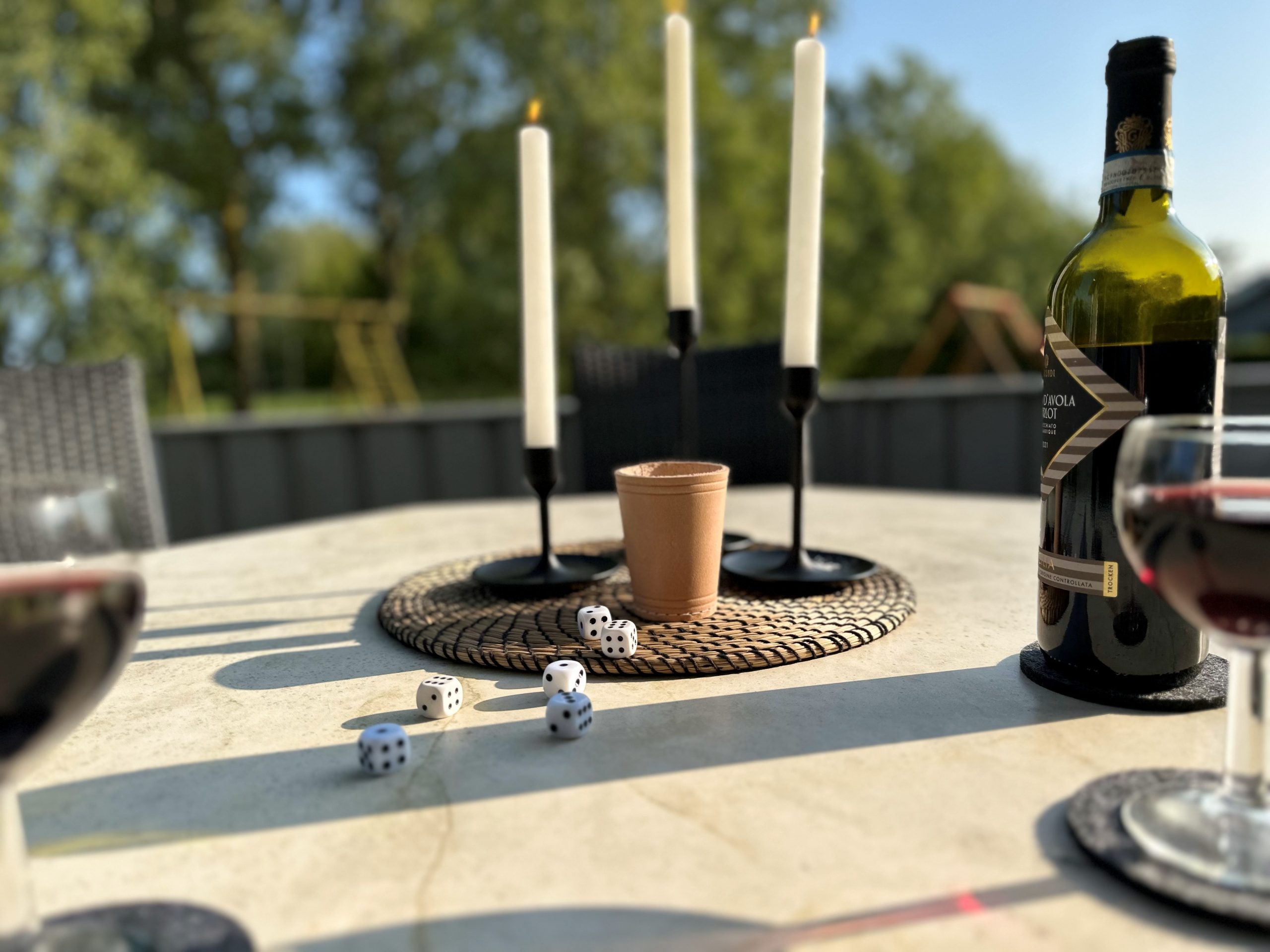 Die (teilweise überdachte) Terrasse lädt zum Verweilen ein, von hier aus habt ihr eure Liebsten im Blick, während sie sich im Garten austoben.